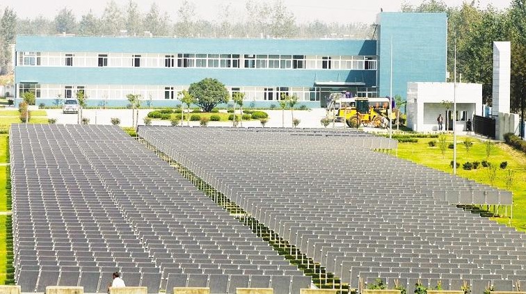 由普樂新能源有限公司設(shè)計制造的市第二污水處理廠100千瓦太陽能光伏發(fā)電站,共采用2500余塊非晶硅薄膜太陽能電池板,占地4000余平方米,是目前國內(nèi)最大的非晶硅太陽能發(fā)電機組。據(jù)了解,該發(fā)電站自今年7月投入運行以來,日均發(fā)電3—4小時,7—9月份發(fā)電3萬千瓦時左右,承擔(dān)該廠所有辦公、照明用電及部分生產(chǎn)用電,提供環(huán)保節(jié)能新能源。