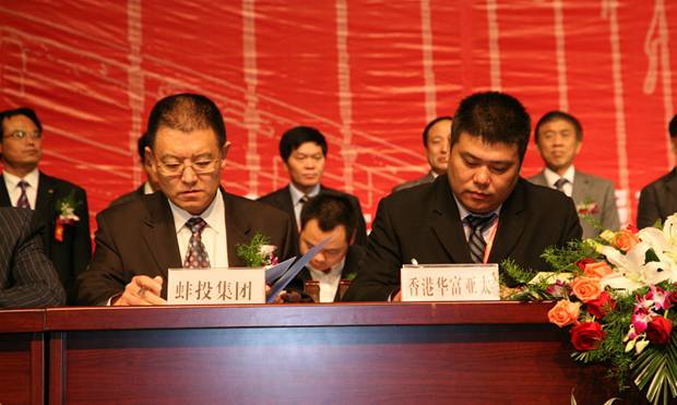 在10月18日舉行的蚌埠投資環(huán)境說明會暨項(xiàng)目簽約儀式上,蚌埠投資集團(tuán)與五家外地投資者分別就五個(gè)項(xiàng)目達(dá)成合作協(xié)議并成功簽約。與香港華富亞太投資有限公司簽署高速鐵路蚌埠站站前廣場商業(yè)區(qū)經(jīng)營項(xiàng)目合作框架協(xié)議,與中通國華大豐投資有限公司簽署第四方物流項(xiàng)目合作框架協(xié)議,與中實(shí)化學(xué)技術(shù)有限公司簽署液晶材料及醫(yī)藥中間體項(xiàng)目合作協(xié)議書,與上海榮杉貿(mào)易發(fā)展有限公司簽署蚌埠中小企業(yè)信用擔(dān)保有限公司增資擴(kuò)股合作協(xié)議,下屬熱電公司與南京鵬熙建材有限公司簽署工業(yè)物流園合作框架協(xié)議。五個(gè)項(xiàng)目中,高新技術(shù)項(xiàng)目2個(gè),金融服務(wù)項(xiàng)目1個(gè),商業(yè)服務(wù)項(xiàng)目1個(gè),物流服務(wù)項(xiàng)目1個(gè),總投資額18.5億元,引入外地資金12億元。