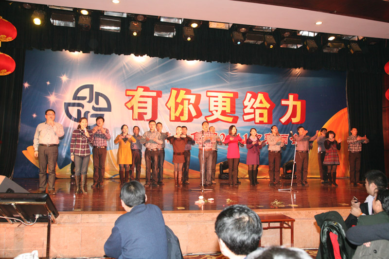 酒會(huì)上,公司表彰了2010年度6名創(chuàng)新標(biāo)兵和32名敬業(yè)模范,公司領(lǐng)導(dǎo)分別為敬業(yè)模范頒發(fā)證書(shū)和獎(jiǎng)金,張孝成副市長(zhǎng)為創(chuàng)新標(biāo)兵頒發(fā)證書(shū)、獎(jiǎng)金并致辭,肖超秘書(shū)長(zhǎng)、創(chuàng)新標(biāo)兵及敬業(yè)模范抽出19名幸運(yùn)的獲獎(jiǎng)員工,為大家呈上了精神大餐和物質(zhì)大餐;著名喜劇表演藝術(shù)家陳佩斯領(lǐng)銜主演的話劇《雷人晚餐》在蚌埠大劇院隆重上演,員工們?cè)诰茣?huì)上獻(xiàn)出精彩紛呈的歌舞表演,為集團(tuán)員工及珠城人民奉上文化大餐。與會(huì)人員舉杯同飲,共慶農(nóng)歷新年的到來(lái)。
