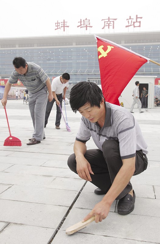 6月25日上午,為慶祝中國(guó)共產(chǎn)黨建黨90周年暨京滬高鐵開(kāi)通,蚌投集團(tuán)黨委組織集團(tuán)本部及所屬19個(gè)子公司共計(jì)198名黨員去高鐵蚌埠南站義務(wù)勞動(dòng),清理南站廣場(chǎng)建筑垃圾并清掃地面,為高鐵通車(chē)做出一個(gè)黨員力所能及的貢獻(xiàn)。