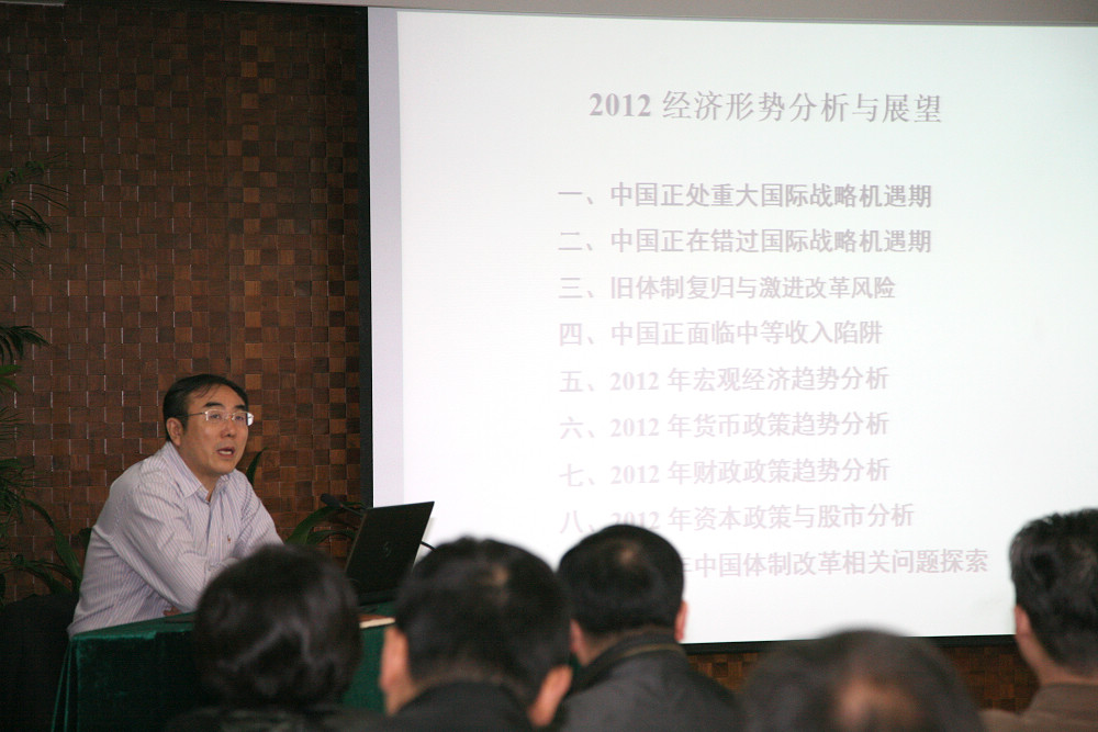 此次培訓(xùn)由中國(guó)政法大學(xué)資本研究中心主任劉紀(jì)鵬主講,劉紀(jì)鵬主任對(duì)當(dāng)前美國(guó)的衰落、中國(guó)的優(yōu)勢(shì)、歐債危機(jī)等國(guó)際形勢(shì)進(jìn)行了深入的分析,并著重分析了我國(guó)當(dāng)前經(jīng)濟(jì)現(xiàn)狀。他認(rèn)為中國(guó)應(yīng)抓住機(jī)遇,統(tǒng)一認(rèn)識(shí),正確決策與政策是關(guān)鍵,否則會(huì)錯(cuò)過(guò)國(guó)際戰(zhàn)略機(jī)遇期。同時(shí)重點(diǎn)分析了我國(guó)2012年宏觀經(jīng)濟(jì)趨勢(shì),提出了“化匯為產(chǎn),外儲(chǔ)內(nèi)用,規(guī)避風(fēng)險(xiǎn)”的對(duì)策,對(duì)明年我國(guó)貨幣政策、財(cái)政政策、資本政策闡述了自己的觀點(diǎn)。劉紀(jì)鵬主任講課內(nèi)容豐富、觀點(diǎn)鮮明、獨(dú)特,對(duì)于公司進(jìn)一步強(qiáng)化資本運(yùn)作具有指導(dǎo)意義和借鑒作用。