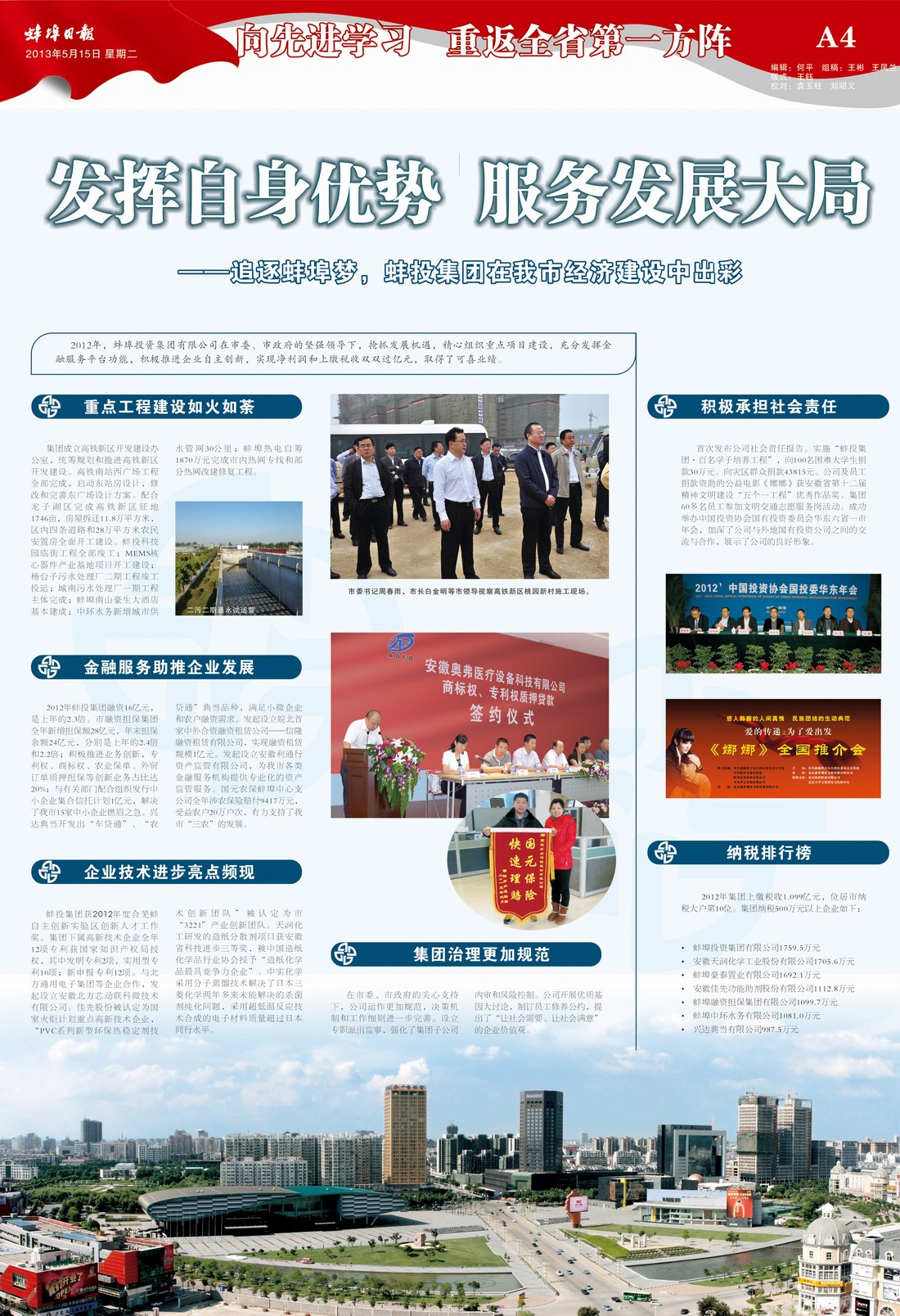 蚌投集團在我市經濟建設中出彩—蚌埠日報先進專版