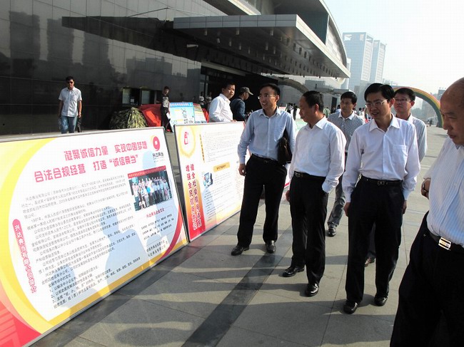 10月12日上午,在淮河文化廣場上,興達典當有限公司作為蚌埠市典當拍賣協(xié)會會長單位應邀參加了由市商務局牽頭,聯(lián)合市委宣傳部、市文明辦、市物價局、市經(jīng)信委等17個部門共同舉辦的以“凝聚誠信力量,實現(xiàn)中國夢想”為主題的誠信興商大型宣傳活動,市人大、市政協(xié)及市商務局領(lǐng)導現(xiàn)場巡視了各單位宣傳展板并與在場人員熱烈交流。