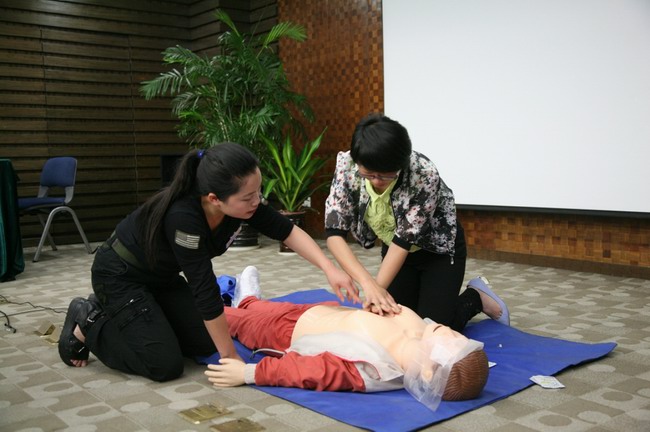 培訓(xùn)中,授課老師介紹了紅十字會(huì)的起源及主要職責(zé),結(jié)合案例詳細(xì)講解了創(chuàng)傷救護(hù)、常見急癥、意外傷害等現(xiàn)場救護(hù)知識(shí),重點(diǎn)演示了徒手心肺復(fù)蘇急救技術(shù)的動(dòng)作要領(lǐng),并邀請學(xué)員上臺(tái)親身嘗試。培訓(xùn)過程講解生動(dòng),內(nèi)容貼近工作生活實(shí)際,現(xiàn)場秩序井然。