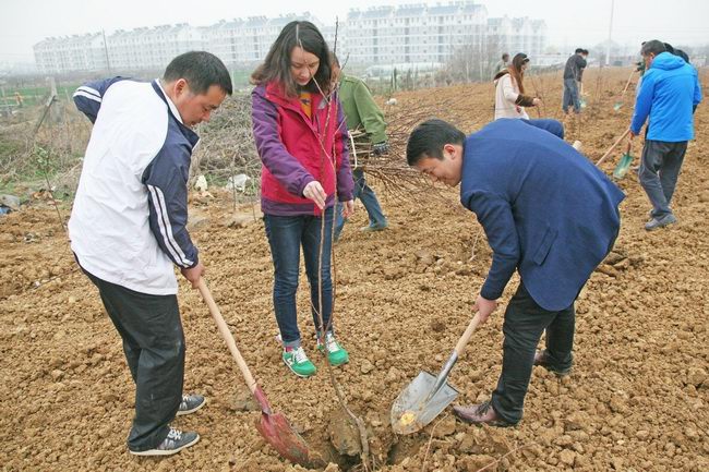 植樹(shù)現(xiàn)場(chǎng),大家分工協(xié)作,揮鍬、挖坑、扶苗、填土,各個(gè)環(huán)節(jié)銜接有序,呈現(xiàn)一片熱火朝天的景象。經(jīng)過(guò)兩個(gè)多小時(shí)的勞動(dòng),大家共栽下近兩百顆樹(shù)苗。大家希望種下的樹(shù)苗能夠茁壯成長(zhǎng),成為蚌埠的空氣凈化器和綠色的風(fēng)景線