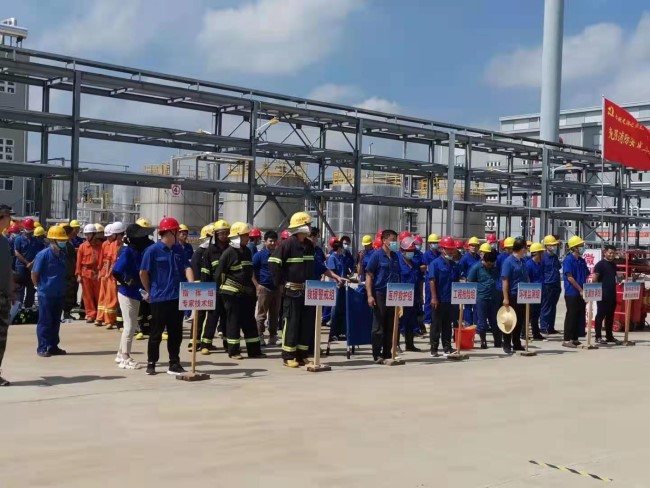 為檢驗(yàn)《天潤化工生產(chǎn)安全事故綜合應(yīng)急預(yù)案》在新廠區(qū)的可行性,7月22日上午,天潤公司在新廠區(qū)重大危險(xiǎn)源1#丙烯腈罐區(qū)進(jìn)行了綜合應(yīng)急演練。公司黨委書記、總經(jīng)理劉彭城任現(xiàn)場演練總指揮,黨委經(jīng)營班子成員、中層管理人員、安全管理人員及相關(guān)部門應(yīng)急救援組成員等70余人參與演練。